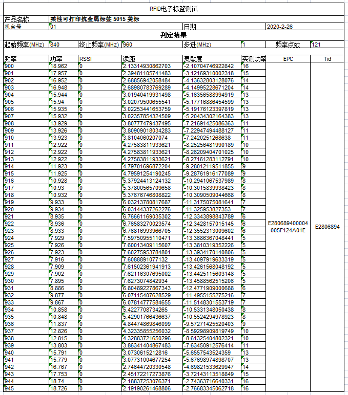 | JT-K7025 | 70*25*1.26mm | Impinj Monza R6-P | 32-bit User, 48-bit TID, 128-bit EPC | tamper-proof |